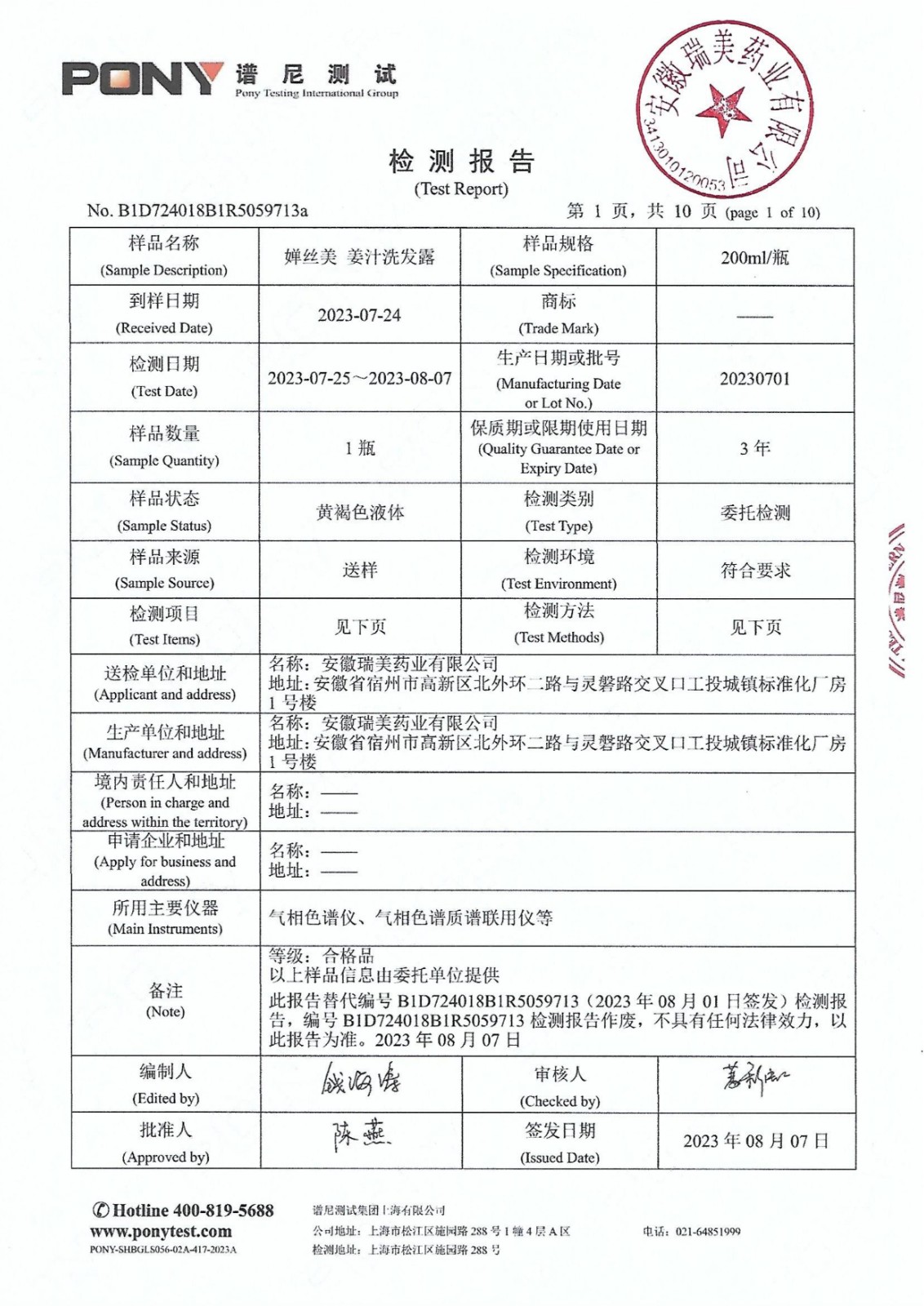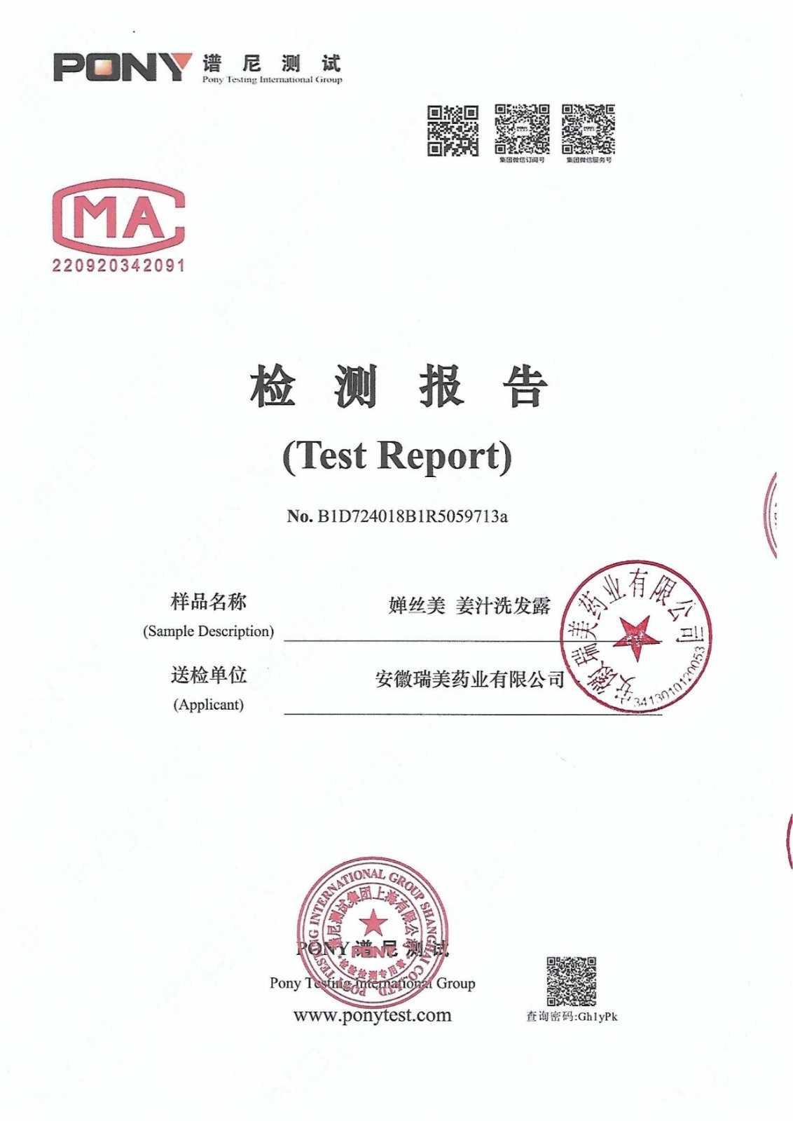 新规检测报告-婵丝美姜汁洗发露